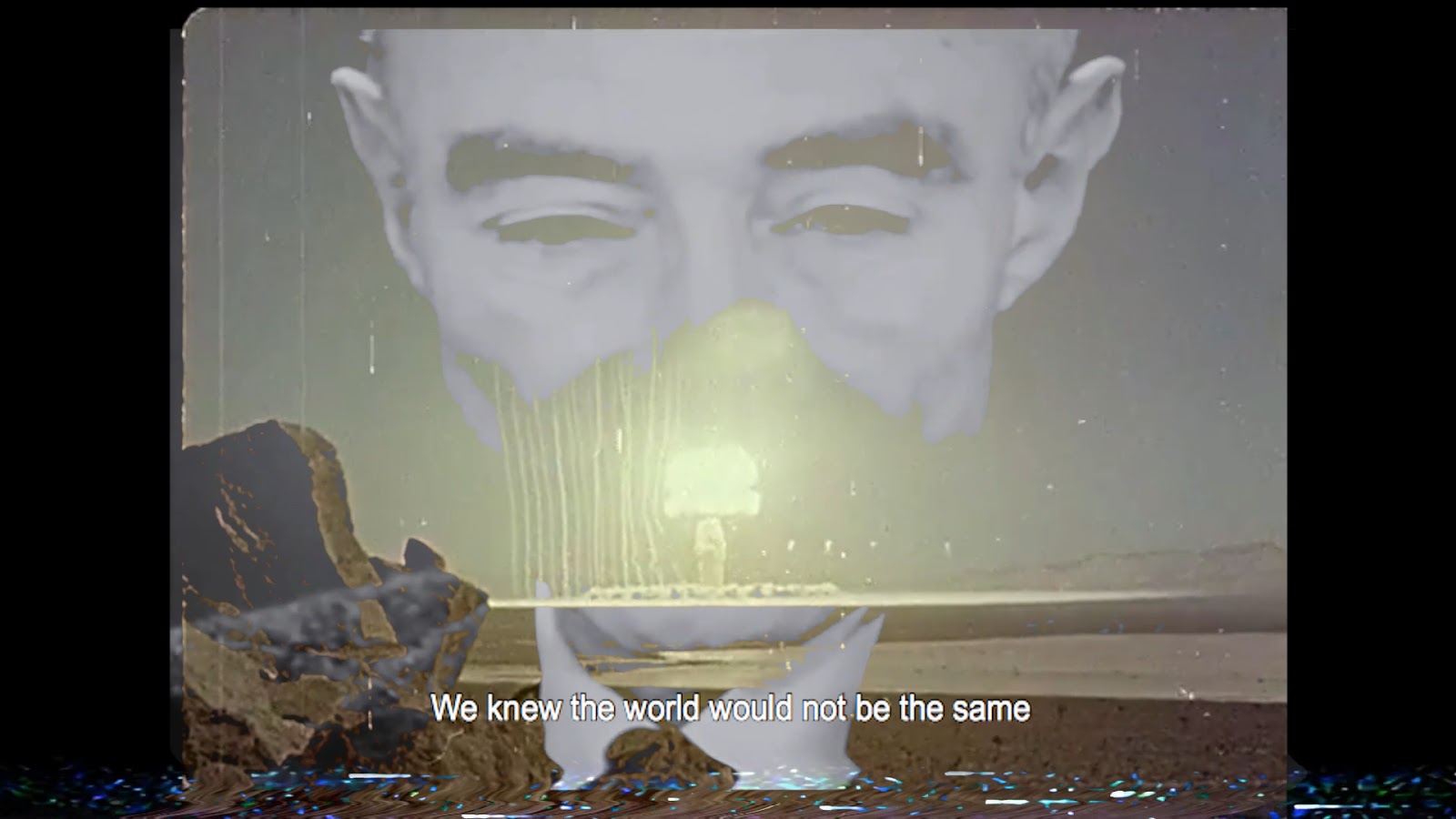 Partiendo de este famoso hecho histórico clave del siglo XX y que marcó el inicio de la era nuclear, esta obra de found footage aborda, a modo de pequeño ensayo visual, dilemas sobre el triunfo de la técnica y sus efectos en la naturaleza y preguntas sobre nuestra limitada capacidad de concebir los cada vez mayores daños que somos capaces de provocar, así como el dilema entre la delegación moral y la acción social antibélica y nuclear.
